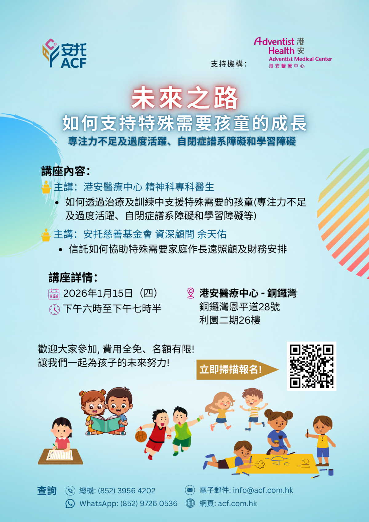 ACF安托邀請專業團隊分享如何支援和探討生前信託協助照顧特殊需要孩童,共建安心未來。歡迎參加,費用全免、名額有限,立即報名!